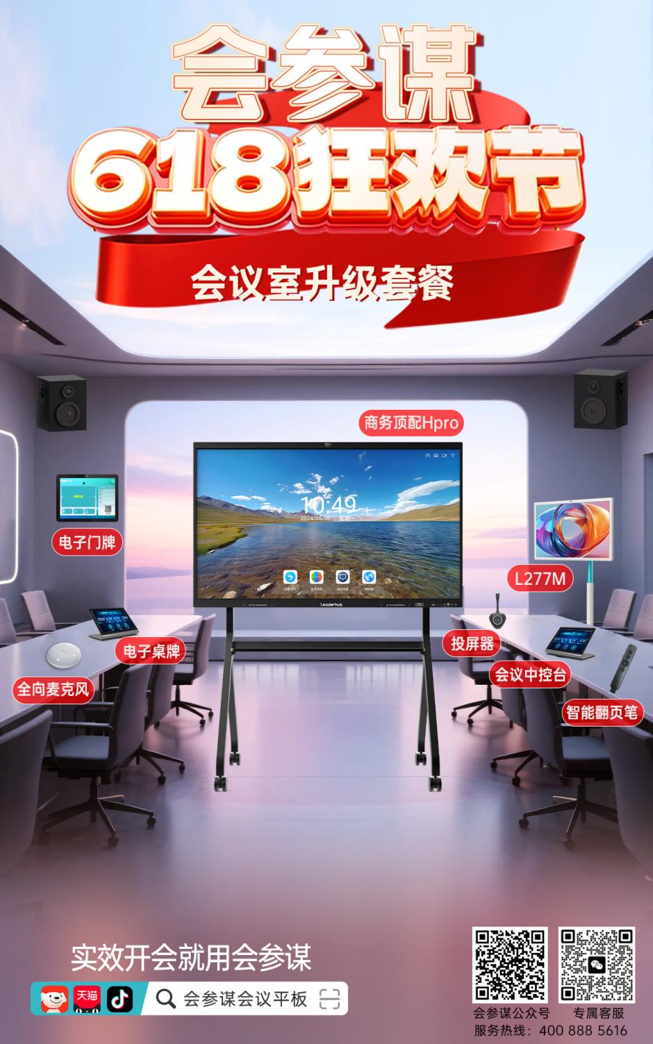618年中大促震撼启幕,各大平台商家推出多重钜惠活动,电子类产品一如既往地备受消费者瞩目。作为商显行业头部品牌,会参谋(Leaderhub)携六大不同场景重磅登场,以定制化专属服务、硬核设备与超值优惠,为企业协作办公、管理提效、成本优化以及家庭娱乐带来全方位解决方案。从数字化升级到多功能陪伴,每套解决方案直戳不同场景的使用痛点,助力用户以亲民价格按需焕新“数字队友”,畅享科技魅力,开启办公娱乐的全新体验。